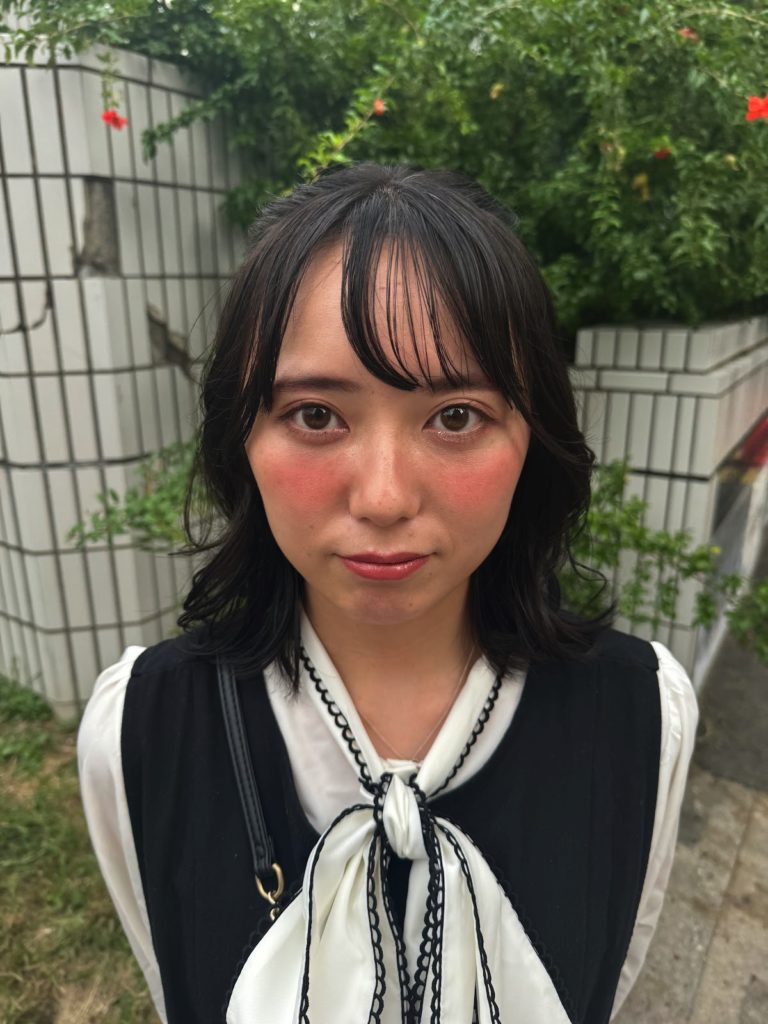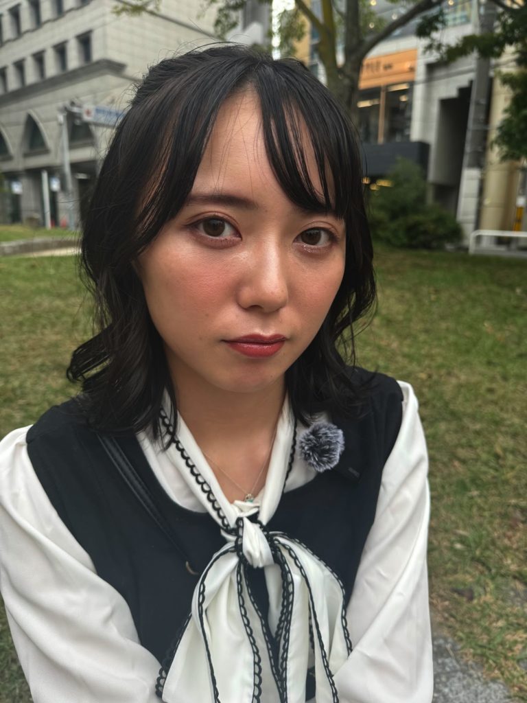 韓国のクールビューティー系でいきました。ただ少女漫画に憧れている女の子感も出したかったので、アイシャドウはピンク系を使ったのと、インラインとアイラインは垢を選びました。チークはほんわかピンクで、リップは赤ピンク系で全体的に統一しています。