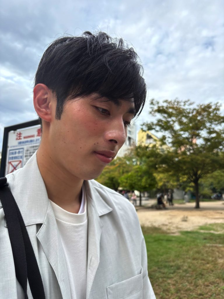 爽やかなシャツスタイルでラフな感じにしました。清潔感を出したかったので、ジャストサイズで柄物は取り入れず、シンプルにしています。